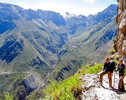 Cañón del Colca 2 días Tour de 2 días con alojamiento en Chivay. Visita los mejores miradores del Cañón del Colca, junto a las aguas termales de La Calera. Precio sin alojamiento: Temporada normal: S/ 109 por persona. Precio con alojamiento (temporada normal): Hostal Tres lunas: S/ 119 por persona. Hostal Sonqo Killa: S/ 145 por persona Hotel Colca Inn: S/ 160 por persona en base doble. Hotel Colca Llacta en: S/ 210 por persona en base doble *Los precios con alojamiento también tienen variación en Semana Santa y Fiestas Patrias. Las variaciones se verán reflejadas de acuerdo a tu selección en el proceso de reserva. *El primer día el itinerario finaliza en Chivay, por lo que si seleccionas la opción sin alojamiento y tu opción de hospedaje está fuera de la ciudad, deberás pagar un traslado adicional. Detalle de alojamientos Hostal Tres Lunas: baño privado, agua caliente y desayuno continental. Hostal Sonko Killa o similar: baño privado, agua caliente, TV y WiFi, y desayuno continental. Hotel Colca Inn: baños privado, agua caliente, TV y WiFi, calefacción y desayuno americano. Hotel Colca Llacta: baño privado, agua caliente, TV y WiFi, calefacción, desayuno buffet y salón de juegos. Itinerario Inicio: a las 08:00 en tu hotel en Arequipa. Término: a las 17:00 en el centro de Arequipa. Día 1: Pampa Cañahuas – Patapampa – Chivay. Te pasaremos a buscar a tu hotel para tomar la carretera y salir de la ciudad de Arequipa. En el camino, iremos aumentando la altura, de manera que iremos haciendo paradas a modo de aclimatación. Una de ellas es Pampa Cañahuas, reserva en la que se puede observar alpacas y vicuñas. Después, haremos una corta parada en Patahuasi, desde donde seguiremos a un lugar que se llama Tacra, en el que tendremos la posibilidad de observar la flora y fauna de la región. El tour continúa con la visita a Patapampa, el mirador de los volcanes, que se encuentra a 4800 m de altitud. Luego de esto, seguiremos a la ciudad de Chivay, donde podremos almorzar e instalarnos en nuestros respectivos hoteles. Durante la tarde, podremos visitar las termas de La Calera (entrada no incluida) para relajarnos y quedar libres para la cena en la misma ciudad de Chivay. Después de esto, nos iremos a descansar para el día siguiente. Día 2: Cruz del Cóndor – Maca – Chivay – Arequipa. Nos levantaremos temprano para aprovechar el desayuno del hotel y luego tomaremos nuestro vehículo para ir a visitar la Cruz del Cóndor. En este lugar, podremos recorrer y visitar el mirador en el que podrás ver algunos cóndores en vuelo. También, realizaremos paradas en algunos pueblos como Yanque y Maca, donde tendremos acceso a las plazas locales y algunas artesanías. Luego de esto, regresaremos a Chivay para el almuerzo y después continuaremos con el retorno a Arequipa, donde finaliza nuestro tour. Conexión Chivay – Puno En caso que tengas pasaje de bus desde Chivay a Puno saliendo entre 12:45 y 13:15, puedes finalizar este tour el segundo día en Chivay, lo que significa perderse la última parte del tour entre Chivay y Arequipa (Mirador de los Volcanes y Mirador reserva nacional Pampa Cañahuas). Esto debes solicitarlo a reservas@denomades.com una vez realizada la reserva en línea. Cabe destacar que el pasaje debes comprarlo con anterioridad al tour, dado que son limitados y se agotan con anticipación. Las empresas de bus que ofrecen la ruta Chivay – Puno son 4M, May Tour y Rutas del Sur. Incluye: Recogida en el hotel (solo área urbana central). Transporte compartido. Desayuno del día 1. Guía bilingüe (español e inglés). No incluye: Boleto turístico del Colca:
